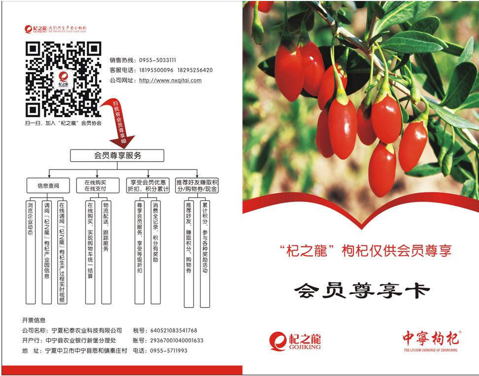 “杞之龍”在品牌創(chuàng)建之始,就以“安全、精品、誠(chéng)信、高端、限量”為宗旨,設(shè)計(jì)了以會(huì)員制為終極目標(biāo)的生產(chǎn)經(jīng)營(yíng)模式,在精心生產(chǎn)的同時(shí),發(fā)展會(huì)員。為使會(huì)員建立歸屬感、信任感,方便會(huì)員實(shí)時(shí)、全面、真實(shí)地了解產(chǎn)品生產(chǎn)狀況,選擇和優(yōu)惠訂購(gòu)“杞之龍”商品,“杞之龍”建立了官網(wǎng)、微信商城等網(wǎng)絡(luò)平臺(tái),即將開(kāi)通基地實(shí)時(shí)視頻窗口,努力為會(huì)員奉上全國(guó)最優(yōu)質(zhì)的枸杞商品和溫馨的全程服務(wù)!